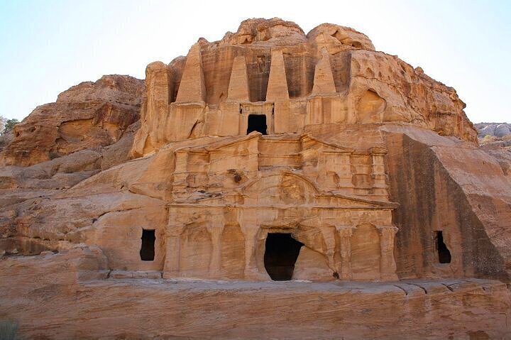 Siq al-Barid (Little Petra), is separated by a few kilometres from Petra. It's best to visit here first. Impressive in its own right, it's a great teaser for the main site. Your expectations for Petra itself are set for something similar, which then heightens the impact of the grander big brother.