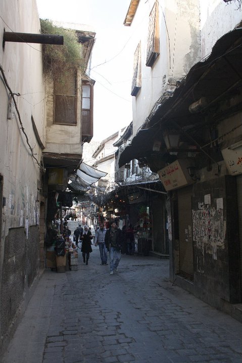 Intersected by the 1.5km Straight Street (or, more correctly, "A Street Called Straight") which contains one of the city's largest souqs - the Souq al-Hamidiyya, packed with tiny shops, entered through columns from a Roman temple built on a site that had been occupied by an even older temple. The souq smells of spices with craft shops dedicated to everything from leather and copper goods to inlaid boxes and silk scarves it is covered by an arched steel roof supported by iron lacework, with torch-beam-like shafts of sunlight admitted through bullet holes punctured through the roof by the machine-gun fire of French planes during the nationalist rebellion of 1925. (I have plagiarised parts of that description because it is so accurate.) Click on this link and the long steel roof can be readily identified across the middle of the satellite image.