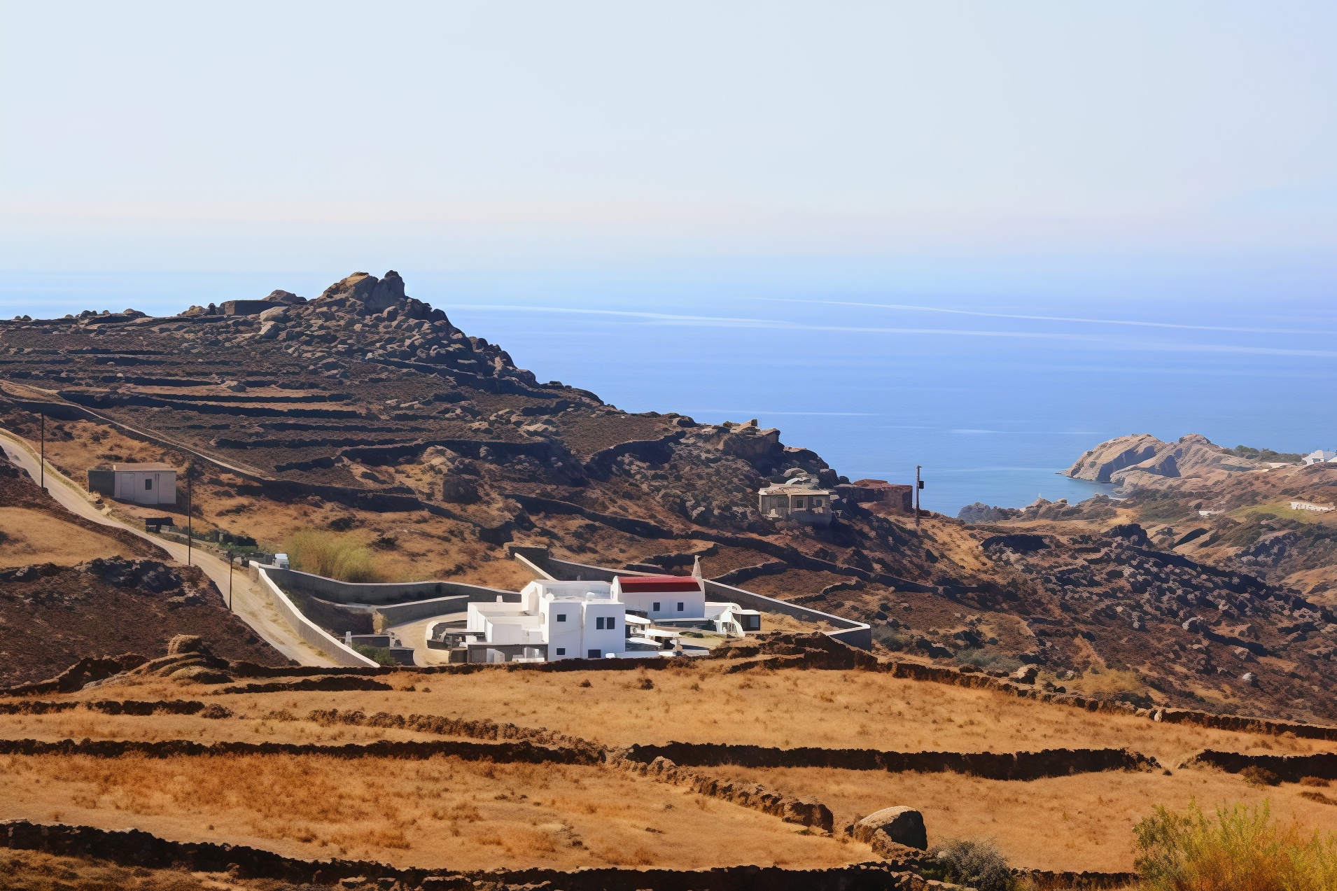 A dry, dusty and very brown island at the end of the summer, its port town of Mykonos is a pretty collection of whitewashed houses around the small harbour and surrounding hills. Frenetic traffic made up of buzzing rental quad bikes and scooters and tiny, wobbly 3 wheeled trucks of the locals (given the compact size of the place it doesn't take too many vehicles to become frenetic), a tangle of squeezy backstreets that tourists don't venture into in any great numbers. All in all, quite a nice place for sunning around a hotel pool and venturing into town on foot and exploring the island by bus, car, quad bike or scooter. Pre-tourism, the place must have survived on fishing and sparse farming of a few goats and onions on rocky land holdings along the narrow roads lined with stone walls. Some grand houses are scattered around back road hills for who-knows-who rich bastards. Tiny red-roofed Greek Orthodox churches proliferate, 365 of them, one for each day of the year we were told but a Google search suggests about 250.